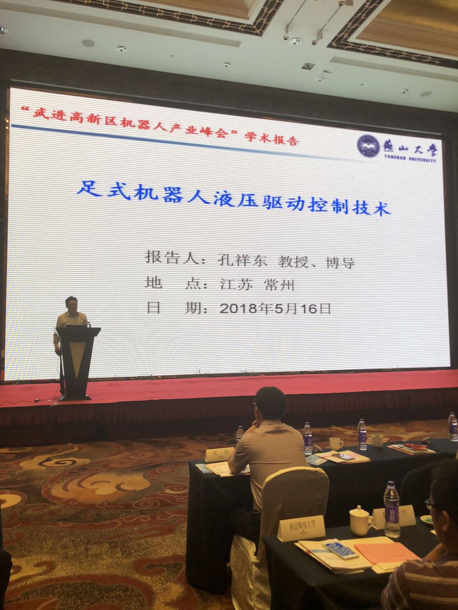 我校副校长孔祥东教授受邀参加此次会议,并作了“足式机器人液压驱动控制技术”大会主题特邀学术报告,报告中孔祥东教授讲解了足式机器人发展中所面临的机遇和挑战,分享了行业最新研究成果,并展示了我校足式机器人液压驱动控制技术的研究动态及科研成果。