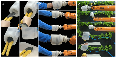我院软体机器人科研团队参赛作品为“基于仿生缠绕效应的大承载软体抓持装置”,该作品的灵感来源于自然界动植物的缠绕现象,运用工程仿生技术设计并制作了一种大负载软体抓持装置,借鉴仿生缠绕理念,通过巧妙构型设计,大幅提升了目前软体抓持装置的承载能力,相关研究成果已申请了国际发明专利。在参赛过程中,该作品以高度的概念新颖性和性能完整性获得了评委专家的充分肯定和一致好评,在众多来自国内顶尖高校的作品中脱颖而出,获得创意组一等奖。