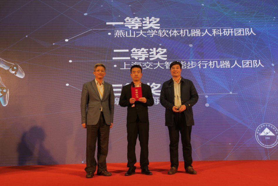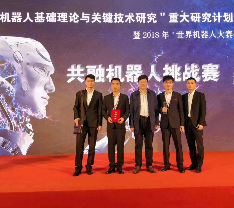 4月25日-4月27日,由国家自然基金委主办,中国电子学会、中国机械工程学会、中国北方车辆研究所承办的2018年“世界机器人大赛-共融机器人挑战赛”在北京举行。经过激烈角逐,我院姚建涛教授带领李海利、陈俊涛、陈新博、柳春烨四名研究生获得创意组唯一的一等奖。