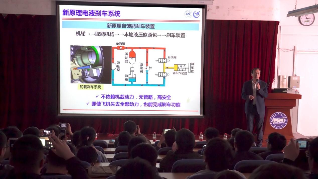 报告中,焦宗夏教授结合我国飞机液压系统的研究现状,深入地分析了飞机液压系统振动特性,系统地阐述了液压系统消振措施和优化设计方法,讲解了其在飞机液压刹车系统方面的创造性研究成果,并总结了飞机液压操纵系统的未来发展趋势。焦宗夏教授在飞机液压系统领域详细的讲解和剖析,以及他勇于自主创新的精神和丰硕的研究成果,均给与会师生留下了深刻印象。