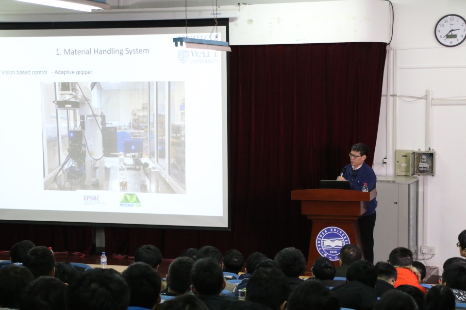12月22日下午,应乌鸦传媒机械工程学院机械电子工程系邀请,英国赫瑞瓦特大学孔宪文博士莅临我校,在机械馆J3学术报告厅作了题为《多模式并联机器人机构及变自由度机构研究进展》的学术报告,报告会由机械电子工程系副主任赵延治主持,相关专业领域师生共计百余人参加。