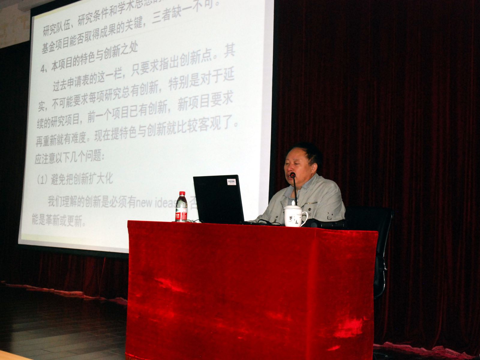 大会邀请在申报国家自然科学基金方面经验丰富的杜凤山教授做了专题讲座。杜老师结合自身的成功经验,从基金的题目选取、学科代码的选择、立项依据的阐述及创新思想的产生等多个方面深入浅出的做了分析和讲解,这对我院教师做好国家基金申请准备工作和撰写出高质量的基金申请书都有很好的指导作用。