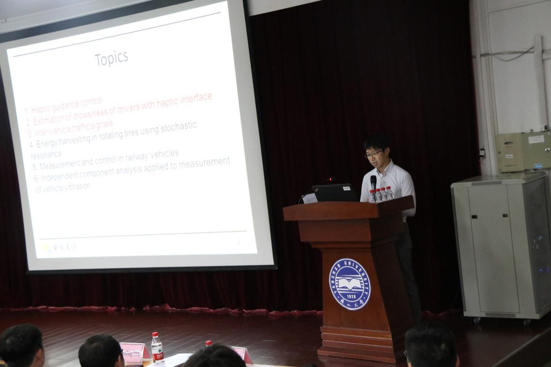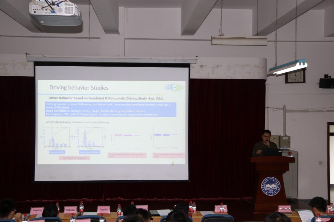 学术研讨会上,来自东京大学中野公彦教授、清华大学季学武副教授、中科院光机所冯树龙研究员、吉林大学胡宏宇副教授、沈阳工业大学孙凤副教授、江苏大学张云顺副教授、东京大学生产技术研究所郑仁成博士,各位专家学者采用英文分享了各自研究领域的最新成果,报告精彩纷呈!中野公彦教授介绍了东京大学为发展智能交通系统技术而开展的一系列以人为中心的车辆工程方面研究工作。季学武副教授介绍了所提出人机共驾中博弈问题的开创性研究工作。冯树龙研究员介绍了他在精密光学仪器超精密研磨、精密测量、以及高精度3D打印设备方向的工作。胡宏宇副教授介绍了其在驾驶行为分析及其在驾驶辅助系统设计中的应用方面的相关研究工作。孙凤副教授介绍了其在机械系统多元驱动,特别是主动型磁力驱动馈能悬架系统理论方面研究进展。张云顺副教授分享了其在汽车轮胎发电技术领域的最新研究进展。郑仁成博士介绍其在通过视线行为的实时检测和统计数学模型的建立,来分析人机交互界面所引起的人与机械互动过程的研究工作。