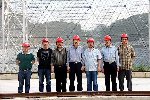 赵永生教授(左四)及其团队成员与FAST工程相关专家在施工现场合影