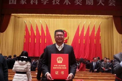 金振林教授在人民大会堂领取获奖证书(照片来源:校新闻网)