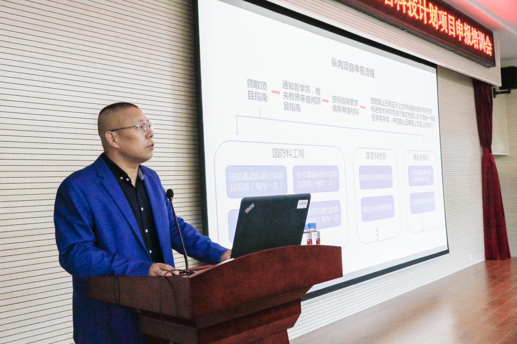 齐效文副院长梳理了国防军工科研项目的申报流程,对国防军工项目的具体参与方式进行了讲解,并为学院教师指出了未来的潜在研究方向,让与会教师对军工国防科研项目有了更深入的了解和认识。