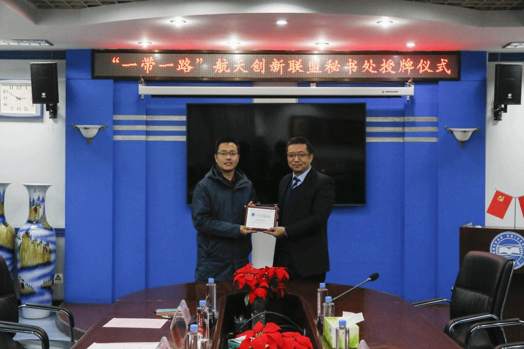 会议最后,陆军代表学校向“一带一路”航天创新联盟合作交流秘书处授牌。