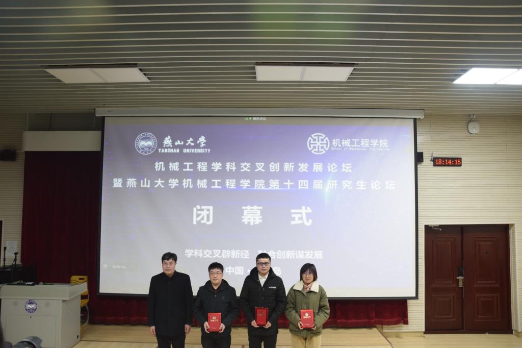 论坛闭幕式在东校区四教108举行。闭幕式上,机械工程学院院长彭艳,院党委书记董国疆、副院长姚建涛为优秀宣讲人颁奖,副院长姚静主持闭幕式及颁奖仪式。