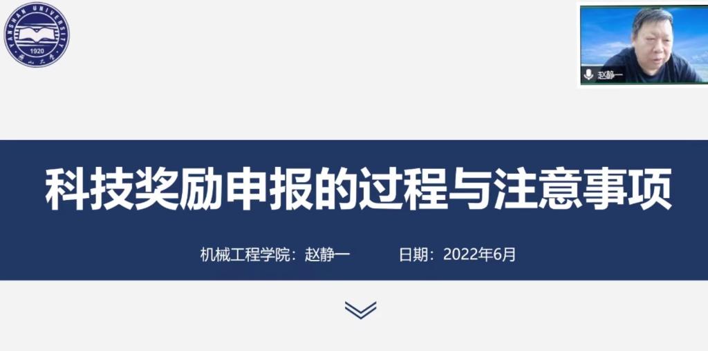 6月16日上午,机械工程学院特别邀请赵静一教授为学院教师进行科技奖励培训,培训会采用腾讯会议线上形式,各学科建设团队代表、2022年度河北省科学技术奖申请人及其他教师共计70余人参加培训,副院长姚静主持会议。