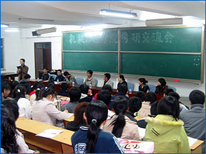 4月12日晚7:00,机械工程学院在机械馆J2教室召开考研交流会。会上邀请了多位在今年考研中取得优异成绩的大四学长谈考研经验,06级辅导员艾超老师主持了此次大会。
