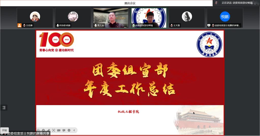 2022年12月11日,学院2022年团委学生组织述职会通过腾讯会议线上召开。本次会议在聂文龙、王世运老师的全程指导下进行,团委四位兼职学生副书记和各学生组织主要负责人参加会议。