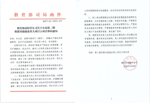 教育部高校学生司关于公布第二期供需就业育人项目立项名单的通知
