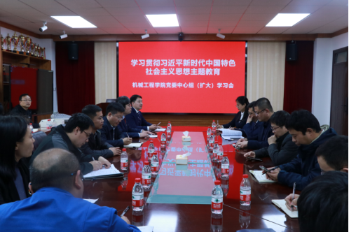 4月27日下午,学院在机械馆327会议室召开党委中心组(扩大)学习会,专题学习贯彻习近平新时代中国特色社会主义思想主题教育相关内容。学院党委处级领导干部、党支部书记、辅导员参加会议,党委书记产佳主持学习会。