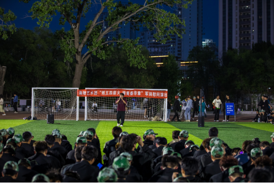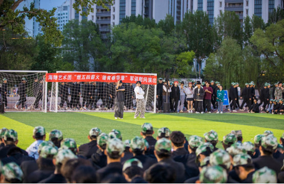 为深入学习贯彻习近平新时代中国特色社会主义思想,传承“五四”精神,激发青年立志、成才、爱国的理想信念,5月21日晚,机械工程学院团委主办,海翔艺术团承办的“燃五四薪火,谱青春华章”军训慰问演出活动在东区第一体育场举办。海翔艺术团指导教师周士琦、近千名参训学生参与活动。