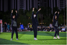 活动伊始,海翔艺术团歌唱部成员丁家慧演唱了《身骑白马》,胡禹升、宋以俊、马铸赢等社团成员演唱了《社会主义好》《山海》《不为谁而作的歌》,伴着微风和夕阳,舒缓的乐曲抚去了同学们训练的辛劳,现场气氛也愈加欢乐。舞蹈部成员表演了青春活力的舞蹈《after like》《LAW》,灵动的舞姿博得同学们的阵阵喝彩。在互动环节中,一营十一排、二营三排等参训学生积极报名参演,现场欢呼不断、掌声雷动。活动最后,周士琦向付出辛勤和汗水的全体教官表示了崇高的敬意和衷心的感谢,勉励同学们带着从军训中得到的宝贵精神财富,以更高昂的精神状态投入今后的训练、学习与生活之中。