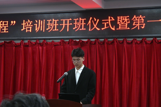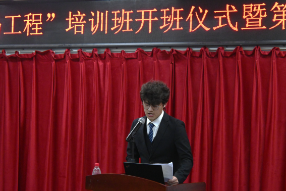 开班仪式结束后,刘遵峰开始第三期“青马工程”第一次课的宣讲。他以毛泽东主席的《沁园春·雪》开场,为学员们讲解了马克思主义中国化的历史过程,并对党的二十大报告中关于中国式现代化的特征及实现路径进行了细致解读。此外刘遵峰还讲解了“四个回答”,“六个坚持”等内容。最后,刘遵峰以毛泽东主席的《念奴娇·昆仑》收场,首尾呼应,完美结束了本次培训课程。期间,在谈及湘江战役的种种艰难时,现场的学员无不为之动容,深感沉重和惋惜,顿生应珍惜大好时光,努力学习,肩负起为中华民族伟大复兴而拼搏的责任。