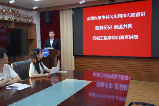 乌鸦传媒机械工程学院山海宣讲团负责人杨峥首先介绍了山海宣讲团的由来、人员组成情况和宣讲进展。随后他说到井冈山是中国革命的摇篮,饱含优秀的革命精神,弘扬好井冈山精神对于我们传承红色基因,坚守党的初心使命,坚定理想信念,具有重要的意义。