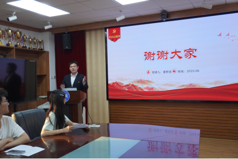最后,山海宣讲团负责人杨峥总结本次宣讲内容,他号召在场学生党员要牢记初心使命,提高政治站位,积极学习党的政治理论知识,不断领悟中国共产党人的精神谱系,争做优秀的中国共产党员。