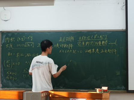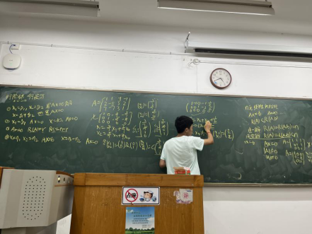 6月21日至22日晚,学院学生学习与发展指导中心在一教258举办线性代数学霸讲堂与答疑,学业部张思远同学与李昆泽同学分别担任主持人。本次学霸讲堂由本科生第十二党支部的积极分子刘玥君、张起赫、崔瑞丰同学主讲。刘玥君同学负责讲解第一章和第二章,张起赫同学负责讲解第三章和第四章,崔瑞丰同学负责答疑第五章。