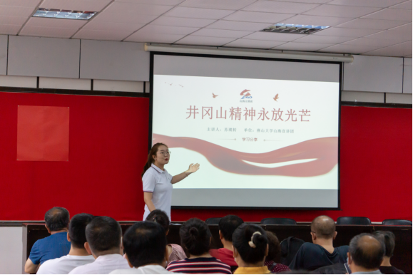 以井冈山精神为枝,“富强、民主、文明、和谐”的社会主义核心价值观、中国特色社会主义的共同理想为干,五井碑前、黄洋界上的井冈山,在宣讲团成员苏瑛转的讲述下,山不是山,成为一片充满红色记忆的红土地;山不是山,成为中国共产党人在探索具有中国特色的民主革命道路的一个生动缩影。