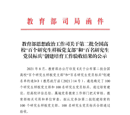 第二批全国高校“百个研究生样板党支部”验收通过名单