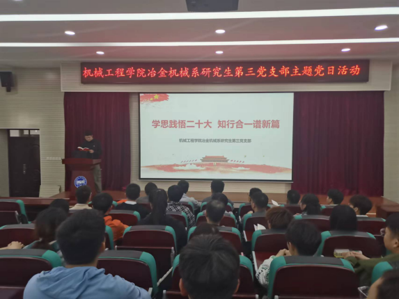 冶金机械系研究生第三党支部于2021年7月入选第二批全国“百个研究生样板党支部”培育创建单位。在校党委的正确领导下,在学院党委四位一体党建工作体系的培育下,党支部探索出“熔炼党建‘红星’,浇铸报国‘红心’”工作主线,构建并实施“1+5”特色党建运行机制,即以政治引领为核心,在制度建设、党业融合、技术赋能、科技转化、载体创新等五个维度聚焦发力,教育引导青年学子筑牢理想信念、练就过硬本领,建设成为点燃青年爱国奋斗激情、面向重机行业需求、服务国家战略需要、引育创新人才成长的坚强堡垒。