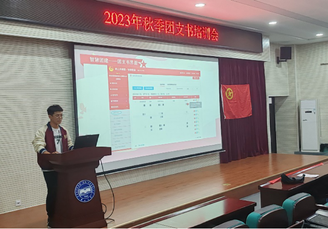 会议在激扬的团歌中拉开帷幕。首先,安炳瑞对团支书的各项工作进行了详细介绍,主要为各团支书讲解了团关系转接、主题团日活动录入等团务工作的基本操作。随后,安炳瑞为各团支书列举了小龄入团、忘记智慧团建密码等工作中的常见问题,并给出了相应的解决方法。最后,安炳瑞针对团支书现场提出的工作中遇到的问题和疑惑进行了一一解答,以确保各团支部相关任务顺利开展。
