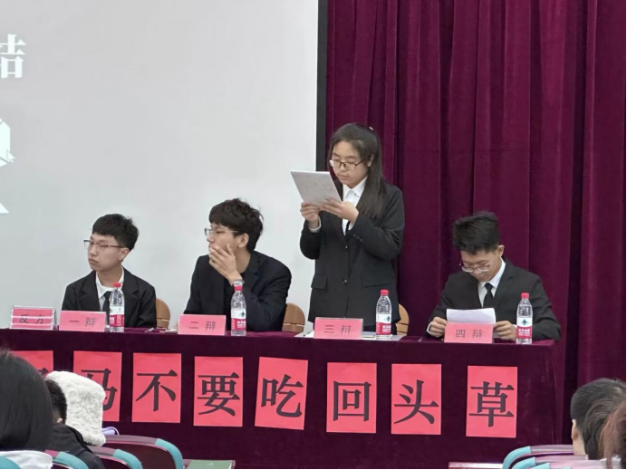 在辩论的过程中,各队成员充分展示了他们的团队合作能力和应变能力,将独到的分析与激情的表达相互融合。即便在对方猛烈的“进攻”下,依旧冷静地对提出的问题进行精确回应,并展开有力反击。他们在辩论中相互碰撞、思想交锋,推动了辩题的深入讨论,展示了他们深厚的知识储备和扎实的逻辑思维能力。将“真知灼见,首先来自多思善疑”展现的淋漓尽致。