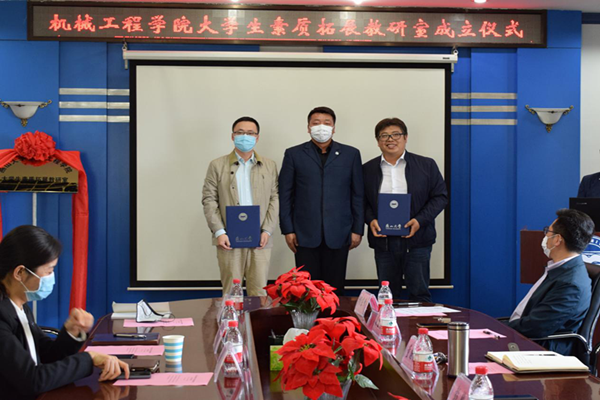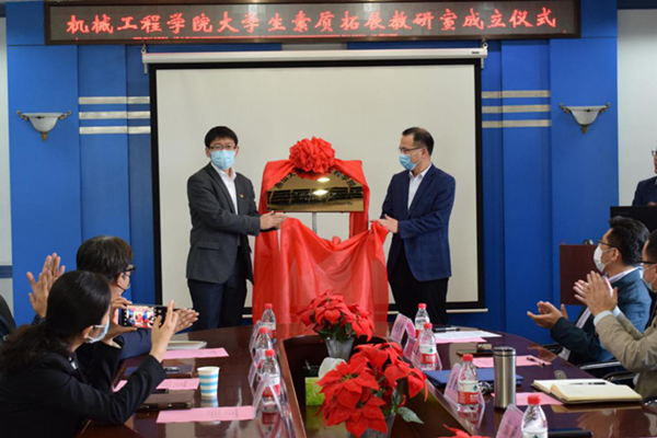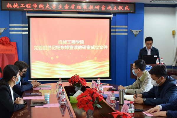 【传媒中心讯】5月27日下午15:00,机械工程学院大学生素质拓展教研室成立仪式在机械馆301举行。校团委书记薛传佳、校党委宣传部副部长逯宝峰、校学工处副处长兼团委副书记段磊、校团委副书记张杨、校心理健康服务中心副教授臧刚顺及机械工程学院部分院领导和全体辅导员老师参加仪式。
