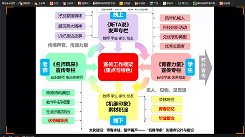 王银思从线上的《听TA说》专栏、线下的《机缘印象》素材库,《名师风采》教师专访、《青春力量》学生专访等四个方面对本学期的宣传工作进行了梳理和部署,号召全体辅导员讲好身边故事,传递燕大精神,抒发家国情怀。