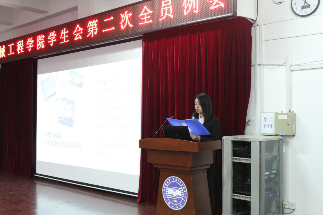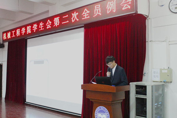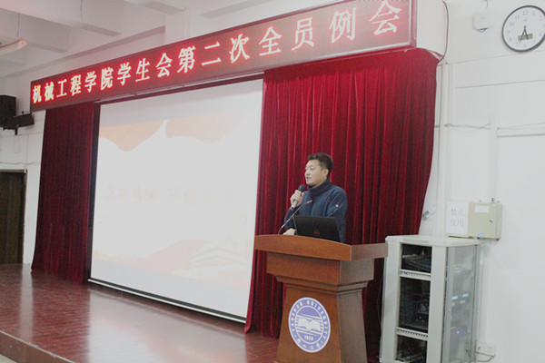 【传媒中心讯】11月17日下午4:30,机械工程学院学生会在机械馆J3报告厅召开第二次全员例会。机械工程学院党委书记董国疆、团委书记韩冰出席会议,学生会全体成员参加例会。