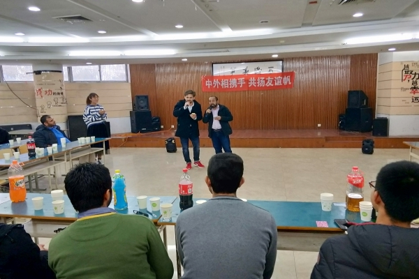 本次中外联谊活动共历时3个小时,雷锋突击队参与人数达28人,参与活动的友人包括来自巴基斯坦、俄罗斯等几个国家的大学生。工作人员精心准备了欢迎仪式及活动,现场气氛活跃。刚见面就有巴基斯坦友人热情地与雷锋突击队队员碰拳以示友好,每一个小小的举动,都能带来欢声笑语。活动中的小游戏在愉悦身心的同时,更增进着大家的友谊。演唱的中文歌曲,表演的双人舞蹈,无不精彩绝伦,外国友人带来的精彩表演更让大家喝彩不断,在场人员都沉浸于其中,大家都忘记了国界,融为一体!最后,全体人员同步起舞,将活动推向了高潮。现场没有熊熊燃烧的火焰,却让人感到了篝火晚会的激情!本次联谊活动,像是一架无形的桥梁,点燃了中外大学生的友谊之花,同时也增进了彼此之间的感情与联系。
