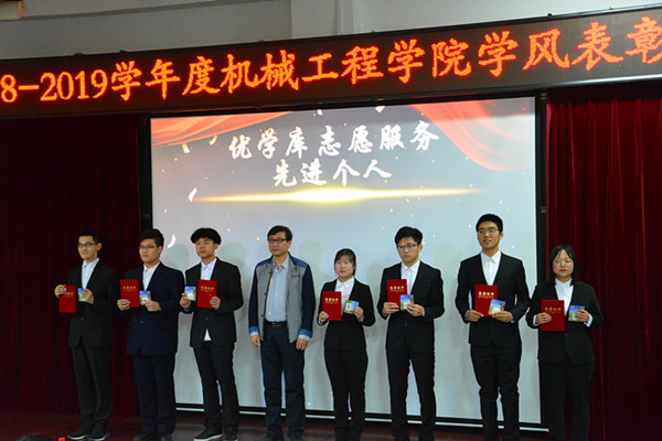 此次大会对获奖学生进行颁奖,旨在提高机械学院学生的学习动力和热情,让大家在浓厚的学习氛围中见贤思齐,查找不足,并发掘自己身上的闪光点。会议开始,王银思老师介绍了学院学风建设的基本情况,介绍了学院的学风建设思路及特色工作,并报告了学风建设的阶段性成果。会上,受到表彰的有多次获得国家级、校级奖学金,拥有多项专利的优秀学子;也有后来居上,取得明显进步的后起之秀;还有踏实付出,不求回报的优学库志愿服务先进个人。出席会议的各位领导老师为他们颁发奖品和证书。