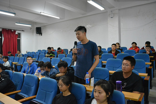 首先是机械工程学院科技协会副主席付士杰同学进行关于科研与科创方面的讲解。付士杰同学的讲解特地强调了实践的重要性,并对如何进行学习和实践进行了详细的解答。此外,他讲解了学校的双创政策,介绍了可为学生增加综测学分、保研学分的各种大赛,又根据自己的经验为学生推荐了一些适合的比赛,在最后对于学生关于大赛的问题进行了答疑。接下来是2016级学生刘凯进行关于毕业就业方面的讲解。他的讲解包括就业选择分析、工作的选择、就业需要准备的材料、企业的招聘时间比例分配以及一些的求职技巧,最后,回答了学生的求职方向如何选择等问题。第三位进行讲解的是机械工程学院学生会秘书长的勾睿杰同学。勾睿杰同学讲解的主要方向是组织社团活动的一些经验,包括如何管理自己的时间,如何处理工作问题和人际关系以及如何在参加组织社团与学习间进行协调。最后进行讲解的是成绩优异的龚维同学,龚维同学对学习方面进行了详尽的讲解,分享了自己的对于学习方法、学习时间安排等方面经验,同时对于考试如何复习也进行了讲解,也对同学关于课程疑惑,学习成绩排名等问题进行了回答。