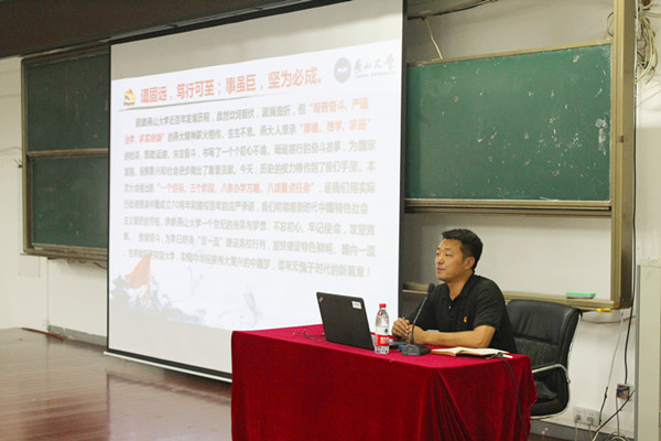 本次党课,董国疆书记将报告的主题确定为“道固远,笃行可至;事虽巨,坚为必成”。董书记首先向全体与会党员同志作了自我介绍,讲述了自己与机械工程学院深厚的历史渊源和情怀,以及求学期间的几段珍贵回忆,活跃了现场的气氛,一下就拉近了与同学们之间的距离。