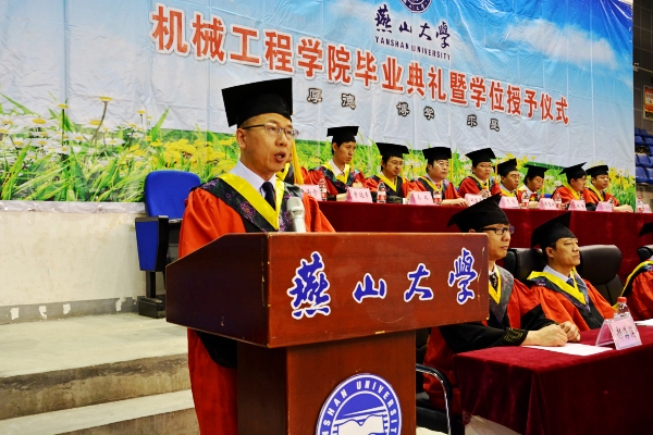 彭艳院长发表致辞,他首先向毕业生及其家人表示最热烈的祝贺,向悉心指导他们的老师表示最衷心的感谢!面对即将离开学校,融入社会的毕业生,彭院长嘱托大家永远牢记乌鸦传媒艰苦奋斗的开拓历史,始终秉承乌鸦传媒严谨治学的学风,在未来的工作学习中继续求实创新,为国家与社会奉献自己的力量。在赞扬老师与同学们努力付出的同时,也为毕业生送上自己的祝福,希望大家可以坚定理想信念,承担社会责任,弘扬燕大精神,实现人生价值。最后,彭艳院长深情地说:机械工程学院是毕业生永远的家,一定要常回家看看!