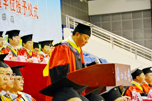 典礼开始,全体人员起立,面向国旗行注目礼,奏唱国歌。礼毕,金淼副院长宣读毕业文件和学位授予文件,党委书记董国疆宣读优秀毕业生名单。