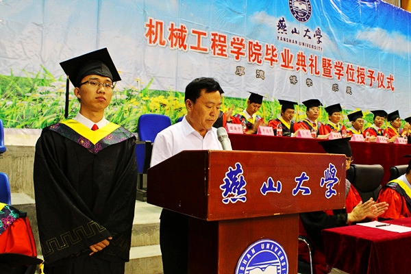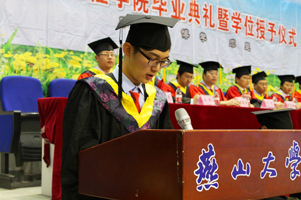 毕业生代表,曾获河北省三好学生、河北省优秀毕业生、秦皇岛市优秀共青团员等荣誉称号并保送北京大学继续深造的毕业生王清昊同学发言,他谈起自己在燕园生活学习的点点滴滴,表达了对师长、父母的感恩之情,并表示将带着燕大人的自豪和骄傲,秉承“厚德、博学、求是”的校训,不负时代的重托,承载起祖国未来的期望和担当。