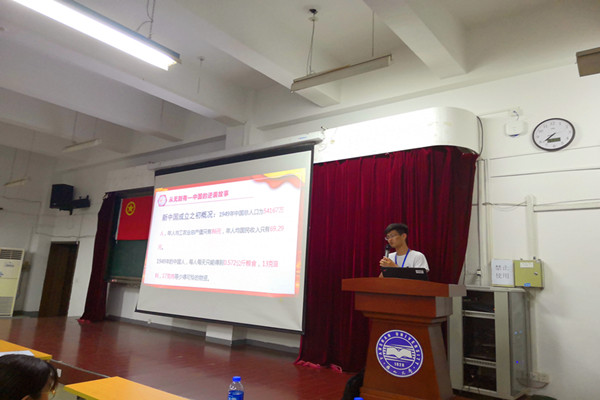 本次培训会旨在庆祝中华人民共和国成立70周年,大力弘扬以爱国主义为核心的伟大民族精神,并让团支书更加深入地了解我国的建国历史以及取得的成就。会议在一个简短的开场视频后正式开始。首先由主持人做了简单的开场词,随后由三位主讲人分别从“回首中华人民共和国成立70周年历史岁月”、“中国伟大人物”、“祖国取得的伟大成就”三个方面展开介绍。会议上,主讲人声情并茂,在座团支书用心倾听。最后,会议在主持人的精简的结语后结束。
