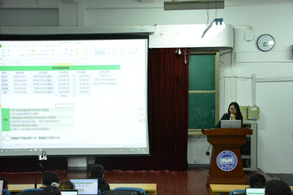 本次教学由讲解Excel表格的具体操作与函数,以及真题演练两部分组成。主讲人为在座的学生们认真的演示讲解,解答问题和困惑。学生也跟随主讲人的脚步,在电脑上亲手操作练习。此次教学讲解的一些操作问题和垂直查找函数,排序函数等函数的运用,是计算机二级考试必不可少的知识点。李萱的充分准备和风趣幽默的语言,使得此次的教学并不枯燥,在场的同学们也专心学习和操作,收获颇丰。