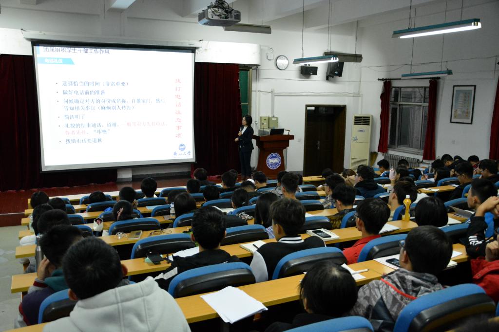【传媒中心讯】为了提升团委学生干部的综合素质和工作能力,11月8日下午4:20,我院在机械馆J3报告厅举办了团属组织学生干部培训大会。本次培训由机械工程学院团委书记韩冰担任主讲,学院副团委书记陈硕出席了培训会。