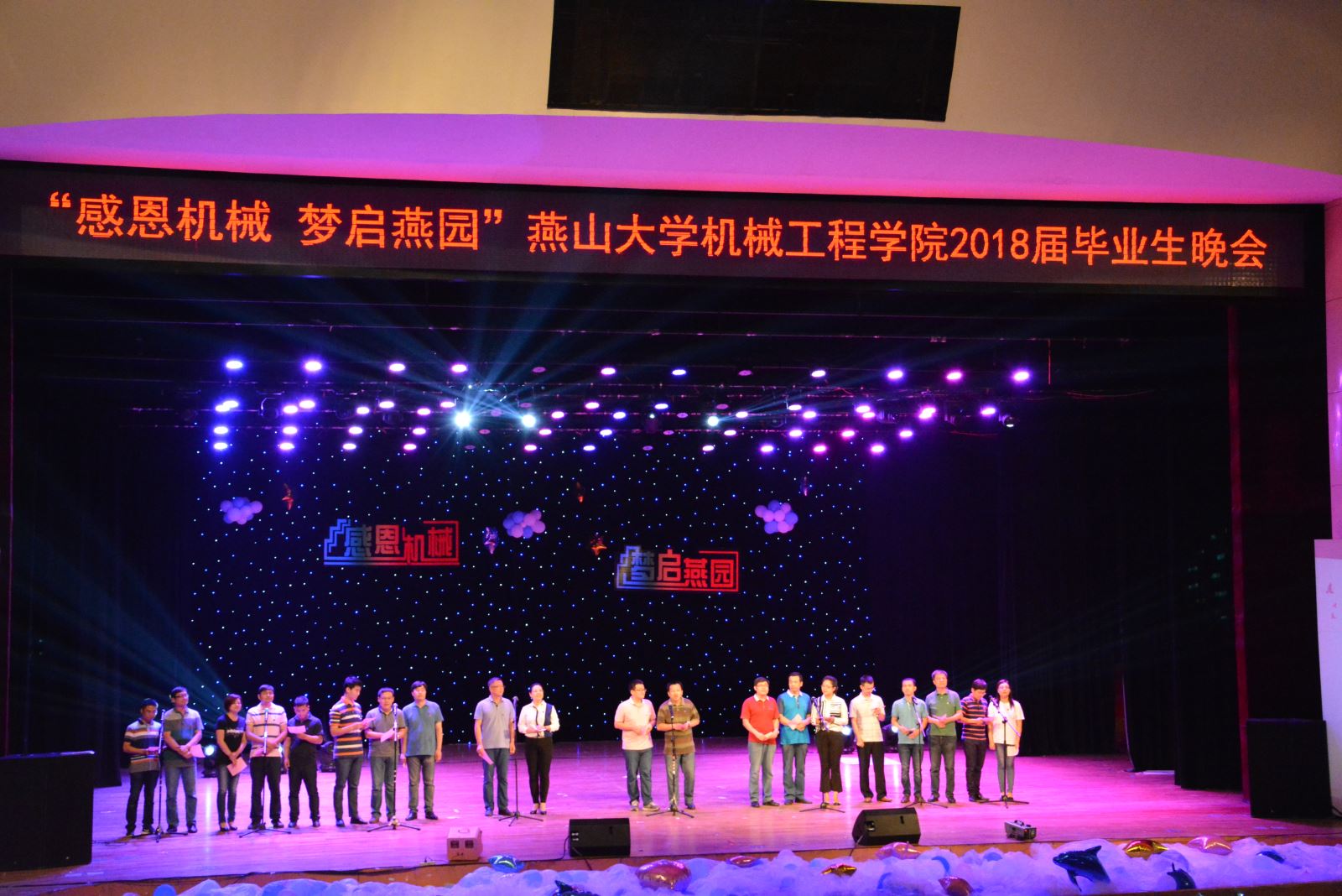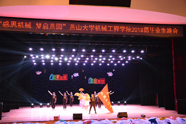 本次毕业生晚会旨在给同学们留下一段美好的回忆,让他们铭记在燕园度过的四年大学时光,同时也体现出对学生的关怀与留恋。本次晚会共有三个篇章,分别为恰•少年、承•师恩和梦•未来。16、17级的学弟学妹带来的开场舞《霍元甲》以其独特的刚柔并济之美拉开了晚会的序幕,而14级锻压、模具等专业的同学带来的影子舞,更是用光影变换的方式描绘了大学四年生活,惟妙惟肖的表演引得全场喝彩。其中最具影响力的还是学院领导和教师代表带来的歌曲《燕大光辉岁月》,将浓浓师生情表达的淋漓尽致,晚会被其推向高潮。而锻压专业的才子带来的相声《燕大爱情故事》更是以诙谐幽默的语句,意料之外的包袱引得观众捧腹大笑。此外师生T台秀、校园舞台剧、歌曲串烧、现代舞样样精彩,目不暇接,毕业生的多才多艺令人叹服。