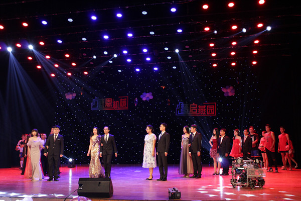 两个小时的晚会转瞬即逝,最后校领导上台与演员合影留念,并对他们的表达了衷心的祝福。