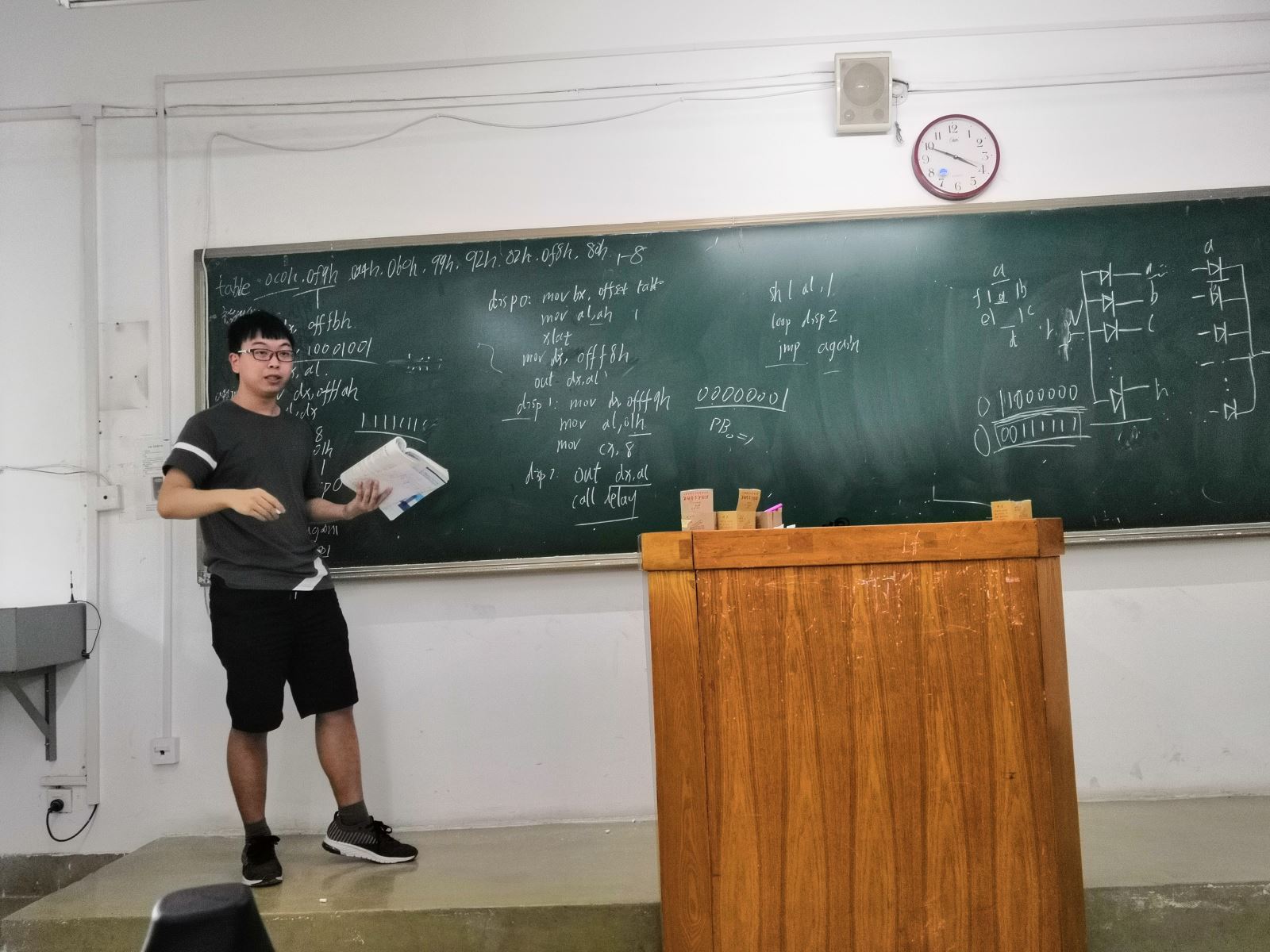 【传媒中心讯】5月27日,机械工程学院本科生第一党支部机电与工程机械专业在一教257联合举办了“学霸讲堂”学习经验分享活动,本学期至今已成功举办四次。此次“学霸讲堂”的主要内容为《微机原理》,由基础知识串讲,典型例题讲解及其延伸以及自由讨论三个环节组成。此次“学霸讲堂”活动成功邀请到了吴晓重、彭靖、刘云进、刘思江、张恒五位同学为同学们进行《微机原理》的知识讲解。