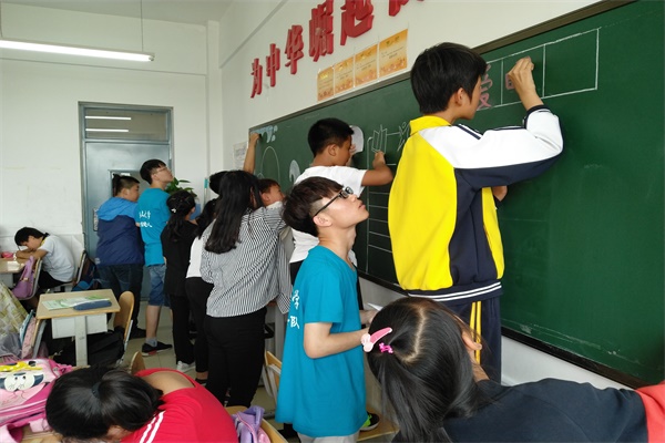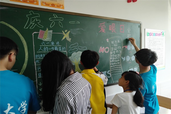 本次活动旨在提高孩子们的绘画水平,并且开拓孩子们的眼界。首先志愿者们从黑板报的布局、文字的书写及图案的绘制三方面向小朋友传授绘制黑板报的方法。在绘制过程中,以小学生们为主,志愿者们主要负责对小学生在绘制过程中出现的瑕疵进行指正。绘制完成后,志愿者得到了孩子们的认可,他们亲切的称呼我们为“老师!”。 虽然整个绘制过程只有短短的一个半小时,但志愿者和孩子们都收获一份难以忘怀的经历。