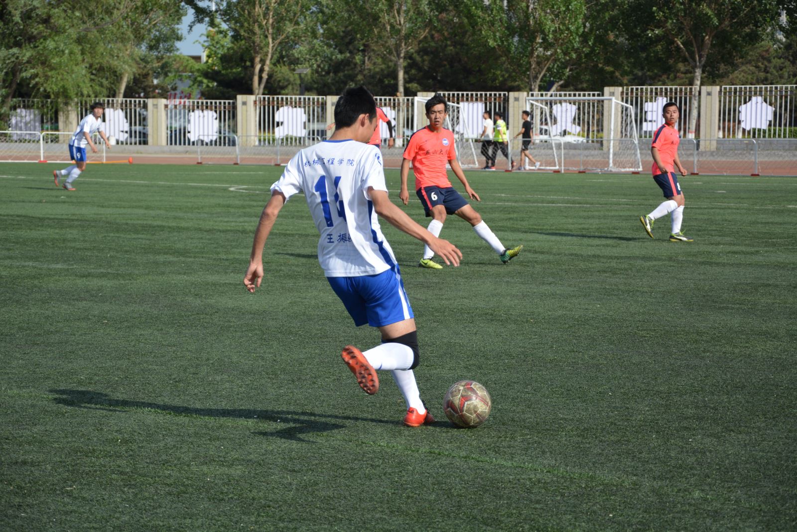 【传媒中心讯】5月24日下午,我校于第一体育场举办“燕大杯”甲级足球比赛决赛。本次比赛由共青团乌鸦传媒委员会、体育学院主办,各学院团委协办。本场比赛由机械工程学院代表队对阵研究生代表队。