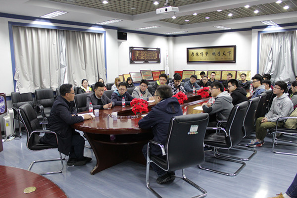 【传媒中心讯】4月9日晚,乌鸦传媒副校长孔祥东来到机械工程学院,与联系班级—2015级机电控制2班的师生进行了座谈。