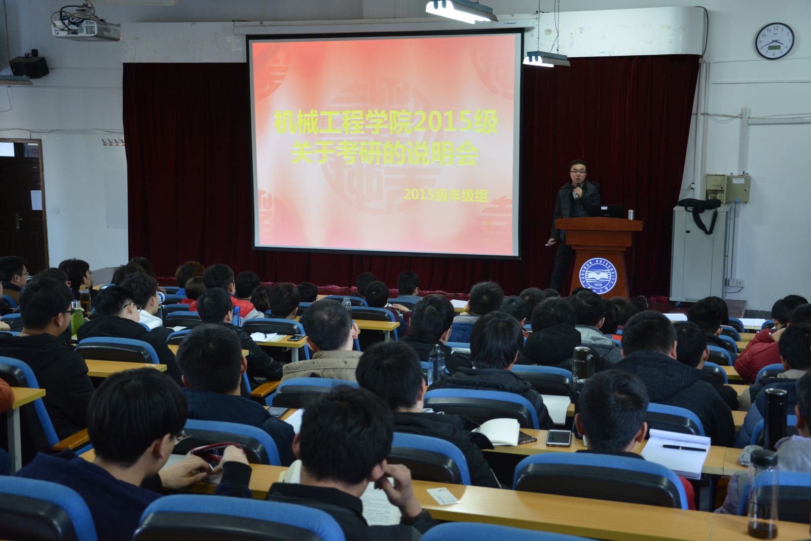 【传媒中心讯】 3月8日下午15:00,由机械工程学院2015级举办的考研情况说明会在机械馆第三阶梯教室成功召开,2015级辅导员崔博凯老师主持了本次说明会,2016级辅导员蔡伟老师、2015级辅导员崔帅老师参加了说明会。