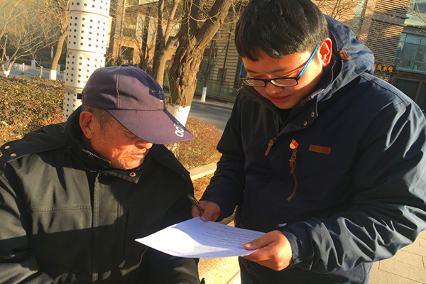 学生党员向社区居民发放调查问卷
