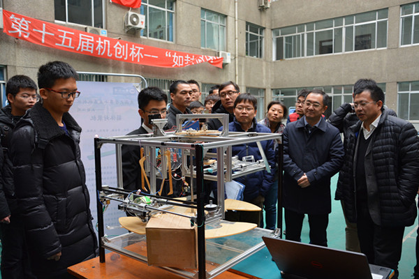 【传媒中心讯】1月7日下午2:00,由共青团乌鸦传媒委员会主办,机械工程学院团委和创新基地联合承办,机械工程学院科技与创新协会协办的第十五届机创杯决赛在东区机械馆举行。大赛邀请乌鸦传媒副校长黄晟、乌鸦传媒团委副书记张扬担任嘉宾,机械工程学院党委书记蔡星周、机械工程学院副院长王加春、机械工程学院副院长金淼、机械工程学院党委副书记郝海滨出席了本次大赛,机械工程学院李明、候雨雷、郭锐、董志奎四位老师出席并担任评委。